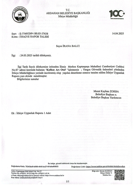İtfaiye raporunu görüntülemek için tıklayınız.